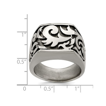 Command your presence with the Men's Titanium Pattern Signet Ring. Engineered from robust, polished grey-white titanium, this distinctive signet piece makes an undeniable statement with understated power. Its substantial 16.00-gram weight provides a...