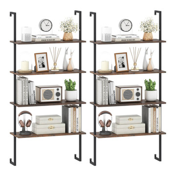 Elevate your entire living space with the 4-Tier Wall-Mounted Bookshelf. This isn't just storage; it's a statement, expertly blending robust metal pipes with elegant wood-textured shelves to create a modern focal point. Reclaim vertical wall...