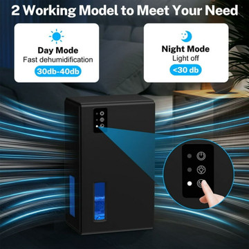 The NineSky Dehumidifier is your solution for a dry and comfortable home. Its spacious 95 oz water tank and 1000 sq. ft. coverage make it ideal for any room. The auto shut-off feature prevents spills, while the 7 colorful night lights add a touch of...
