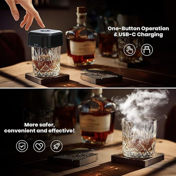 Ignite your senses with the Whiskey Smoker Kit. This rechargeable, flame-free innovation elevates your drinks and dishes with a whisper of smoke, transforming ordinary moments into unforgettable experiences. Unleash six wood chip flavors to craft custom...