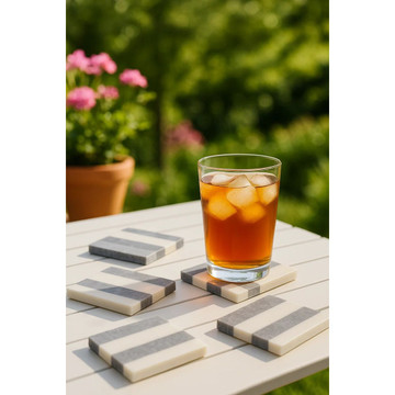 Elevate your space with Geniune Marble Coasters! These aren't just about protecting your surfaces; they're a statement. Each of the four coasters boasts unique, natural marble variations in color and hue, ensuring that no two are exactly alike...