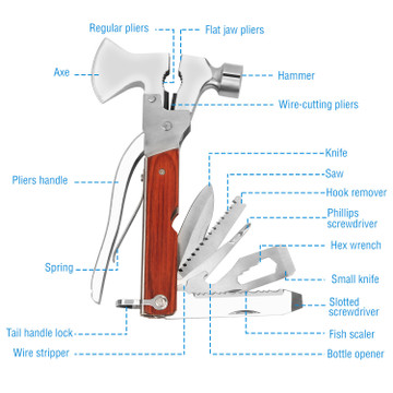Conquer any challenge on your next adventure with our iMounTEK 14-in-1 Camping Multitool. Crafted from heavy-duty stainless steel using premium manufacturing techniques, this tool is built to last. Its multipurpose design includes an axe, hammer, pliers...