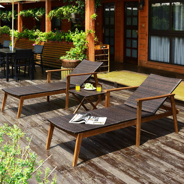 Wish list Quick view $190.00 OFF 3-Piece Wooden Patio Rattan Chaise Lounge Chair Set $459.99 $269.99 Indulge in the ultimate outdoor relaxation with our 3-Piece Wooden Patio Rattan Chaise Lounge Chair Set. This exceptional set boasts two adjustable lounge chairs that effortlessly recline to your... + Add to Cart