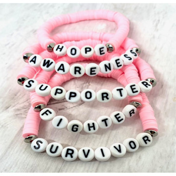 Wish list Quick view $6.00 OFF Custom Breast Cancer Heishi Word Bracelets $17.99 $11.99 Are you a breast cancer survivor? Are you fighting breast cancer now or know someone who is? These pink stretch bracelets are a perfect way to show your support and raise awareness of... Choose Options