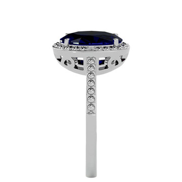 - Gorgeous 4-prong setting sits a dazzling round brilliant diamond, surrounded by two majestic diamond halos for spectacular effect
