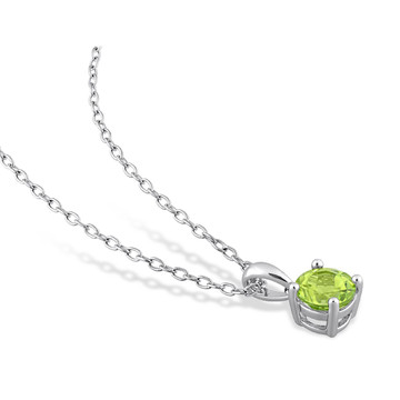 - Lovely solitaire square pendant is crafted in shiny sterling silver and features princess -cut peridot gemstone in a 4 prong setting