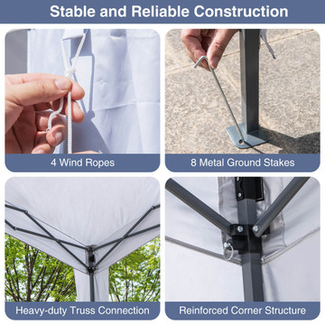 Reclaim your outdoor time with the Pop-Up Canopy Tent! This isn't your dad's old tent. Built with a robust, weather-resistant, fade-free, tear resistant oxford fabric top with UPF50+ sun protection, a privacy sidewall, and a pinch-free setup, it's ready when you are. Effortless setup gets you instant shelter for festivals, tailgates, markets, or just chilling in the backyard. Plus, it all packs into a portable backpack, so you're always ready to roll. Secure it all with ground stakes and sturdy truss connections, so you can focus on the fun. Get your Pop-Up Canopy Tent today and make every gathering a great one!