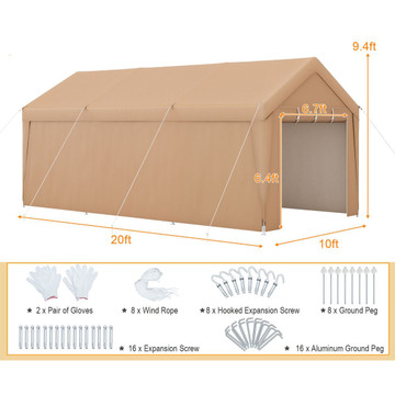 - 10 x 16/10 x 20-Foot Outdoor Heavy-Duty Carport with 2 Doors