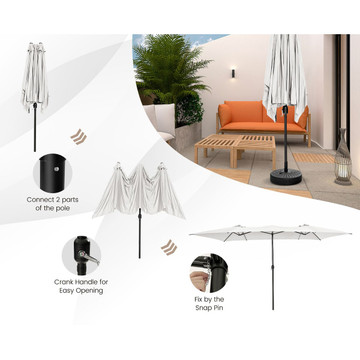 This 12 FT Patio Umbrella is the perfect way to enjoy your outdoor space in comfort and style. Its large, 12-foot canopy provides ample shade for you and your guests. The canopy is made from high-quality polyester fabric that is sun-proof, non-fading, and drizzle-resistant. The sturdy metal frame and 8 heavy-duty ribs ensure that the umbrella can withstand even the windiest conditions. The easy-to-use crank handle makes opening and closing the umbrella a breeze. The vented canopy allows for optimal airflow and heat dissipation, so you can stay cool and comfortable even on the hottest days.
