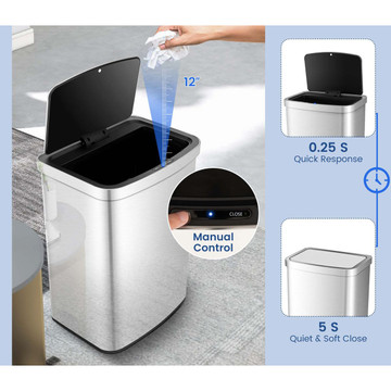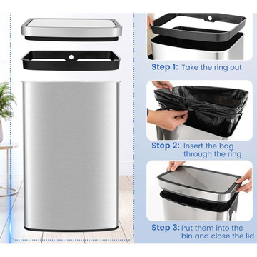 Elevate your home with our 13.2-Gallon Stainless Steel Trash Can with Lock Device. Its sleek design complements any décor, while its lockable lid and detachable inner pail ensure a clean and odor-free environment. The tight seal prevents spills and keeps your surroundings tidy. Perfect for kitchens, living rooms, and offices, this durable trash can combines convenience and style, making waste management a breeze.