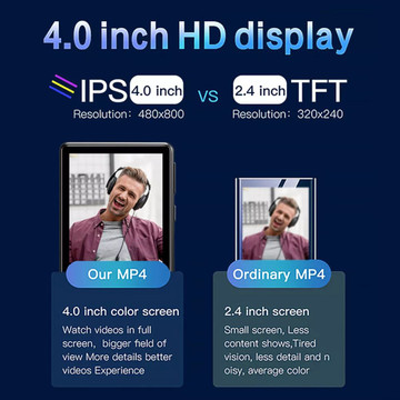 - Equipped with the latest version of Bluetooth, this mp3 player can be paired with Bluetooth speakers and Bluetooth earbuds, and has the characteristics of fast Bluetooth connection speed and low battery power consumption, which is very suitable for connecting Bluetooth earphones or Bluetooth speakers to enjoy music when exercising.This Multi-function MP3 player support FM Radio,Voice recording,E-book(Support TXT format only),Video(Video format support: AVI/AMV),Alarm Clock,Calendar,Stopwatch,etc. It also has a built-in speaker with high sound quality so you can enjoy music even when without an earphone plug-in(Speaker could turn on/off in the settings)This MP3 player uses a professional intelligent digital noise reduction chip to ensure a high-quality audio experience and supports the most popular audio formats: MP3/ WMA/ APE / FLAC / WAV/ /DRM / ACELP, etc. This MP3 player with a full-touch screen and simple use menu makes it very easy to use even for kidsIt can be easily put into your pocket and follow you anywhere. As you know It is very inconvenient to carry a mobile phone when exercising because it is not only heavy but also easy to break, so carrying a lightweight MP3 player when exercising can not only reduce the burden of exercise but also the cost of the MP3 player is extremely low