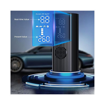 The Portable Air Compressor is the perfect solution for inflating tires on the go. With its powerful 18000mAh battery, it can work continuously for up to an hour and only takes 3-5 hours to fully charge. Its cordless design eliminates the hassle of cables, while its preset modes for bicycle, motorcycle, car, and ball ensure effortless inflation to the correct pressure. The large LCD touch screen with pressure gauge function provides clear readings, and the built-in LED, SOS, and flashing lights enhance visibility in low-light conditions. Its compact size and portability make it easy to store in your car or garage, ensuring you're always prepared for any tire emergencies.