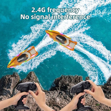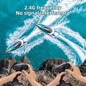 - High-speed racing boat: RC boats for kids and adults race through the water at 20 mph; Includes a 2.4GHz 4-channel RC with a 500-foot signal range that allows multiple toy boats to race at the same time.