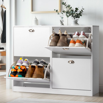 - 2-in-1 Storage Entryway Shoe Cabinet Bench