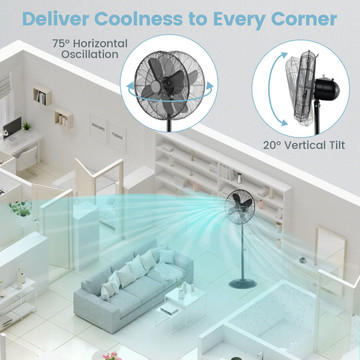 - 20-Inch Wall-Mounted Fan with 3 Fan Speeds & Adjustable Tilt Head