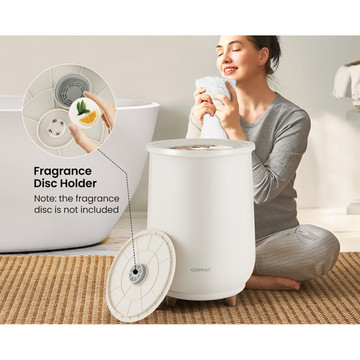 Transform your bathroom into a sanctuary with the 20L Towel Warmer! Revel in the luxury of perfectly heated towels in minutes, thanks to rapid heating technology and a spacious interior for oversized towels and robes. The intuitive digital panel lets you customize temperature and set a timer, while the ambient light and child lock ensure safety. Personalize your experience further with the aromatherapy holder for your favorite scents. Don't wait for a spa day, create one daily. Buy your Towel Warmer now!