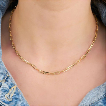 - 24" Stainless Steel Yellow IP Paperclip Chain Necklace