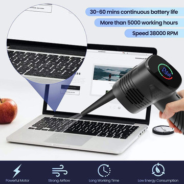 - Equipped with powerful brushless motor, this multifunctional air duster not only enhances cleaning performance, but also ensures longevity and security, including overheat, overload, over-voltage and short-circuit protection