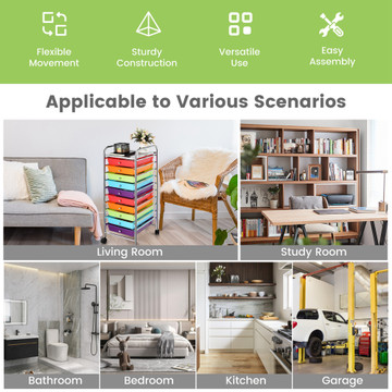- 3-Layer Utility Rolling Cart with Lockable Universal Wheels