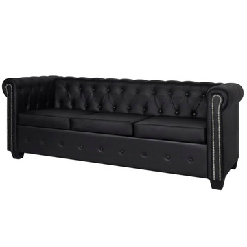 - 3-Seater Sofa with Cushions Black Faux Leather