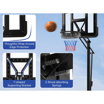 Elevate your home court experience with our 4.25-10-Foot Portable Adjustable Basketball Hoop System! This durable system boasts a shatterproof backboard with a double spring damping system, ensuring years of reliable play. Its adjustable height and sturdy base filled with sand or water provide stability and safety. Effortlessly move and store the hoop with its built-in wheels. Plus, you'll receive two weather-resistant nets and clear instructions for a hassle-free setup. Whether you're a seasoned pro or just starting, this basketball hoop system will bring endless fun and excitement to your home.