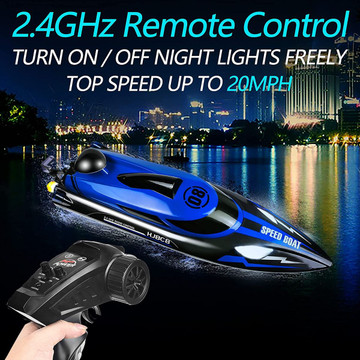 Unleash your inner speed demon with the 4DRC 2.4G High-Speed Racing Boat! Tear through the water at 20 mph, guided by a long-range 2.4 GHz remote that lets you explore up to 328 feet. No need to worry about wipeouts - the self-righting design and double-hatch construction keep you afloat. Plus, a low-voltage alarm prevents unexpected dead stops. Its anti-interference tech means you can challenge your friends to head-to-head races. Time to ditch the ordinary and crank up the fun! Order your 4DRC Racing Boat now and make some waves.
