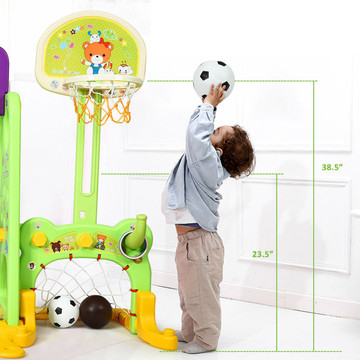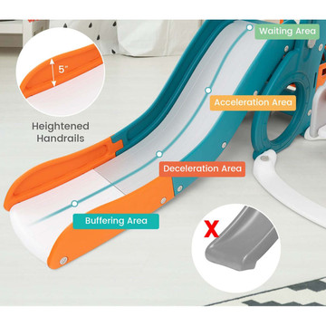 Elevate your child's playtime with the 5-in-1 Toddlers' Climber Slide Playset featuring a basketball hoop and telescope. This playset promotes coordination and adventure skills through climbing, sliding, and basketball fun. Crafted from non-toxic HDPE for durability and safety, it features a raised guardrail, textured ladder, and rounded corners to ensure your child's protection during play. With ample room for little ones to move freely and quick assembly, it's the ultimate playtime companion for worry-free fun.