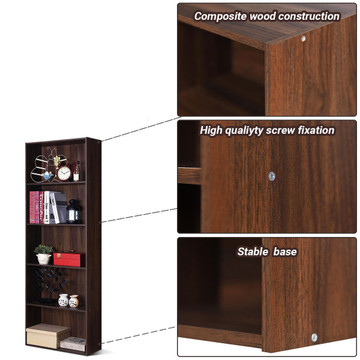 Elevate your home organization with the 5-Shelf Multi-Functional Wood Bookcase, blending modern elegance with practicality. This bookcase boasts five spacious shelves in an open-concept design, providing generous storage for books, decorations, and essentials. Constructed with a sturdy composite wood structure, it features seamless integration on three sides, guaranteeing stability and longevity. The sleek surface and smooth edges enhance its contemporary appeal, effortlessly complementing any interior decor. Experience hassle-free assembly and elevate your storage solutions with this versatile wood bookcase, tailored for a sophisticated and organized living space.