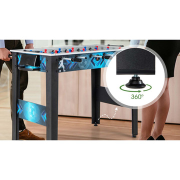 Elevate your game nights with the 54-Inch Indoor Competition Foosball Game Table. Its durable luster long compound coating ensures a pristine playing surface, while the bead-style scoring system makes it easy to track the action. Oversized leg levelers guarantee a level playing field for every match. With its simple assembly and included foosballs, you'll be ready to challenge your friends and family in no time.
