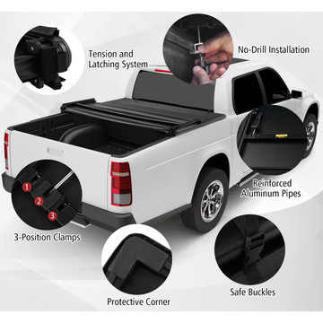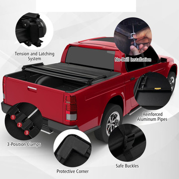 Upgrade your Dodge Ram 1500 with the 6.4-Foot Soft Roll-up Tonneau Truck Bed Cover, providing precise compatibility and reliable protection. Crafted with weather-resistant PVC material, this cover ensures durability in various conditions. The roll-top design enhances accessibility, while firm clasps and cross bars guarantee stability during travel. Enjoy easy installation with rust-proof aluminum pipes and a reinforced corner design for long-lasting performance. Elevate your truck's functionality and style with this tonneau cover, designed to provide optimal protection and a sleek appearance for your Dodge Ram 1500.