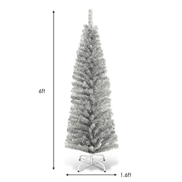 - 6-Foot Artificial White Christmas Pencil Tree with Folding Metal Stand