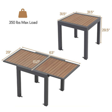 - 63-Inch Outdoor Dining Table for 6 People