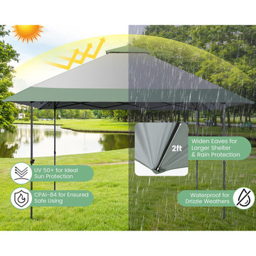Enhance your outdoor experience with the 7.5-Foot Oversized Pop-up Privacy Shower Tent with Storage Pocket. This versatile tent pops up effortlessly, providing instant privacy wherever you go. With a double-room design, it offers ample space for various activities. The silver-coated polyester construction is drizzle-proof and sun-proof, ensuring durability and protection from the elements. The hook and loop fasteners can be loosened to drain water easily. The half-round window allows for ventilation and natural light. For added stability, the tent comes with wind ropes and ground stakes. Stay organized with the storage pocket and mesh pocket, and utilize the interior clothesline for hanging clothes or towels. The smooth double zippers ensure easy access, and the portable design makes it convenient to transport. Elevate your outdoor adventures with the 7.5-Foot Oversized Pop-up Privacy Shower Tent with Storage Pocket.