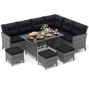 Transform your backyard into a stylish oasis with our 7-Piece Aluminum Patio Furniture Set. Crafted from durable aluminum, this set is built to withstand the elements, ensuring years of enjoyment. Sink into the plush cushions for ultimate comfort, and adjust the table to suit your needs, from the coffee table to the dining table. You can customize the set with multiple combinations to fit your space and style. Its easy installation and effortless maintenance make it a breeze to set up and keep looking its best. Elevate your outdoor experience with this exceptional set, designed to provide comfort and style at an unbeatable value.