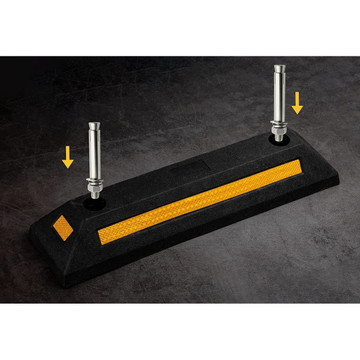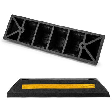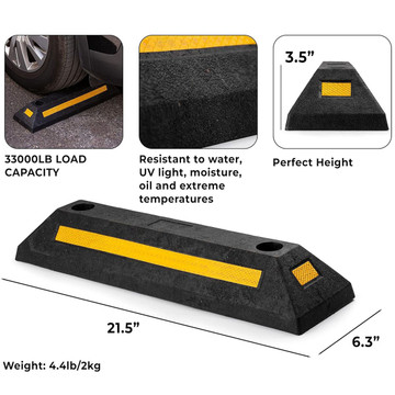 Keep your car safe and secure while parking or reversing, even in the dark! Our parking curb is designed to provide an extra layer of protection for your vehicle. Measuring 4” tall, this strong and durable rubber curb is resistant to damage from gas, oil, UV light, and moisture. The 8 high reflective yellow stripes on both sides reduce the danger of night driving and guarantee your safety. Plus, its flexibility enables it to be installed on asphalt, concrete, gravel, or any uneven ground - making it a great fit for all sizes of cars. Pre-drilled 1/2'' holes make installation easy - you can use it permanently or temporarily as needed. Invest in our parking curb today and drive confidently knowing that your vehicle is protected!