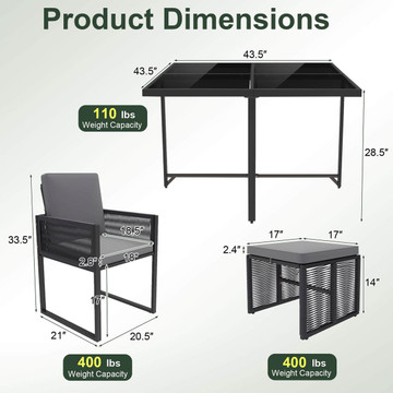 - Material: PE Rattan, Metal, Non-Woven Fabric, Sponge, Tempered Glass