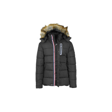 The puffer jacket never goes out of style and now your dog can keep cozy while making his own fashion statement. The quilted nylon shell is water resistant and the microfleece lining is toasty warm in any weather. This dog jacket has leather detailing, poly fill, fleece lined belly and a harness hole so you and your dog are ready for any outdoor adventure, from a walk in the woods to a hike in the snow.