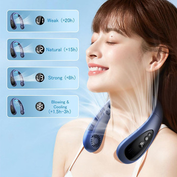 - 1. Bladeless safety design protect your long hair. 70 air outlets of the neck, Double high density polymer lithium battery non false mark,Double frequency conversion maglev motor ultra quiet design, Lightweight design less than the weight of a mobile phone No pressure on neck. Most important this is not just a neck fan, It allows you to breathe freely and enjoy fresh air.