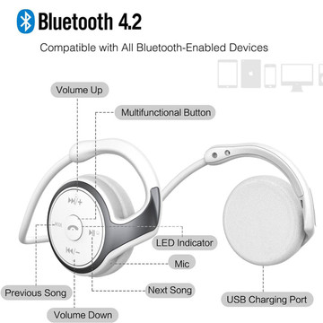 - Bluetooth Wireless Headphones with Built-in FM Tuner, Memory Card Slot, and Mic