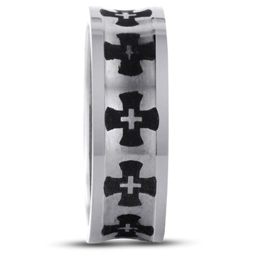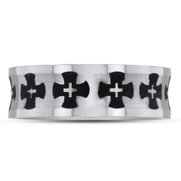 Brushed Titanium Cross Band Ring with Accent Diamonds