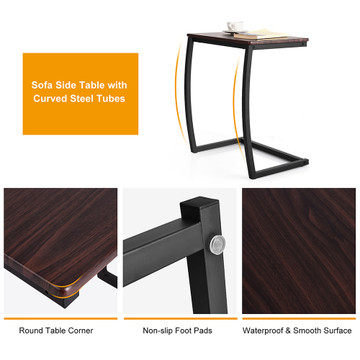 Transform your living space with the C-shaped Side Table, the perfect blend of style and convenience. Its compact size and C-shape design make it ideal for snuggling up beside your couch or bed, providing easy access to your essentials. The elegant wood grain finish adds a touch of warmth to any room, while the sturdy metal frame ensures durability. With adjustable foot pads for stability on uneven surfaces and a simple three-step assembly process, this versatile side table is a must-have for any home or office.