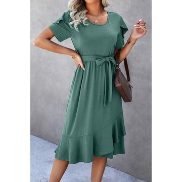 Slip into effortless style with our Casual Stripes Loose Fit T-Dress. This versatile dress boasts a classic round neck and comfortable short sleeves, while its unique combination of striped and solid designs adds a touch of modern flair. Its relaxed fit and above-the-knee length provide all-day comfort, making it the perfect choice for casual outings or everyday wear.