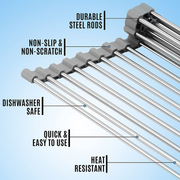 The Collapsible Dish Drying Rack is ideal for drying dishes after washing. A dish drain board drains water directly into the sink and space for 8 large plates and a 4-part utensil drying rack. When not used, it can be easily collapsed and stored under the sink.