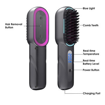 - Cordless Hair Straightener Brush, Lightweight Protable Hair Straightening Brush for Outside Use