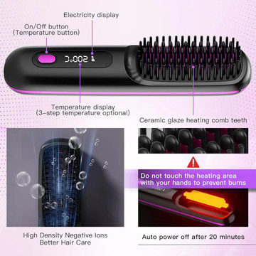 - Cordless Hair Straightener Brush - Portable heated Straightening Brush for Travel, Party, Mini Ionic Hot Comb Straightener for Women-1 Pack