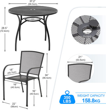 - 1.96” umbrella hole (umbrella not included)