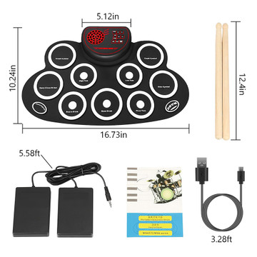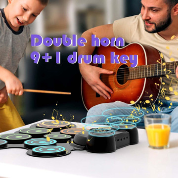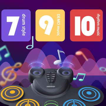 Get ready to rock with the Goplus Electronic Roll-Up Drum Set! This compact and portable drum set is perfect for small spaces or apartments, and it's packed with features that will make you feel like a pro. With 9 sensitive pads, 7 tones, 7 rhythms, and 10 demos, you can create a wide variety of music. The dual built-in speakers deliver dynamic sound with super bass effect, while the colorful LED lights add an extra touch of fun. And with the 2000mAh rechargeable battery, you can play for hours on end without having to worry about running out of power. Don't miss out on this incredible deal - order your Goplus Electronic Roll-Up Drum Set today!