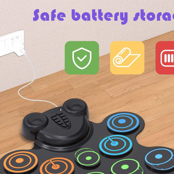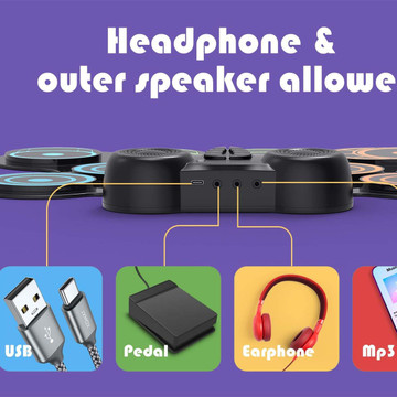 - Sensitive-touch pads only requires light force while 2 wooden drumsticks help to beat drum