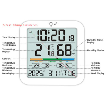 - Multiple Data Display: The large LCD screen displays time, calendar, day, indoor and outdoor humidity/temperature, temperature trends, temperature and humidity, and comfort levels at the same time, and records the highest and lowest temperature humidity. More visible Switchable between Celsius and Fahrenheit displays. Features temperature and humidity calibration for drift that may exist within the thermometer/hygrometer digital system