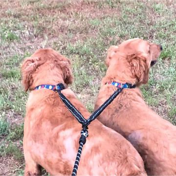 Tired of struggling to walk two dogs with constant different-direction pulls and tangled leashes. The dual bungee add-on will eliminate these issues and return your walk back into a peaceful and pleasurable event. The bungee add-on provides extra cushion while maintaining controlled movement and 360-degree rotation at all connection points eliminate leash tangling.